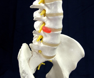 Many of the most common, as well as the most painful symptoms of spinal pain that are experienced, come from the intervertebral discs. The intervertebral discs are the pads that are lodged between spinal vertebrae. They have a jelly-like center called the Nucleus Pulposis, and a fibrous outer layer called the Annulus Fibrosis. The vertebrae are structured so that the canal that holds the spinal cord is immediately posterior to the disc and vertebral body, and the spinal nerves exit along side the disc. Although there is a ligament that runs the length of the spinal canal forming a barrier between the discs and the spinal chord, it forms only a partial protection for the spinal chord and its nerves. The nervous system is vulnerable to weakening of the disc that extends backward towards the nerves. The phenomena that causes the most severe symptoms in the spine is a bulging or rupturing of the posterior aspect of the disc in which it comes into contact with either the spinal chord or the exiting spinal nerves. Anterior weakness of the disc causes much less severe symptoms or none at all. The nuclear material in the center of the disc finds weakness in the outer fibrous capsule of the disc and begins to work itself towards the exterior. This process is called a disc protrusion and can cause a disc bulge. If the nuclear material ruptures out of the disc it is called an extrusion, and is a more serious condition.
